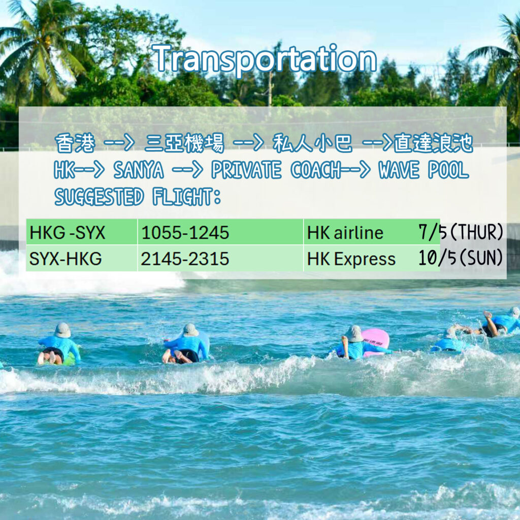 *Hainan Wave Pool will be closed from 11/5 for a month! Come with us before Lower cheung sha wave season starts!!